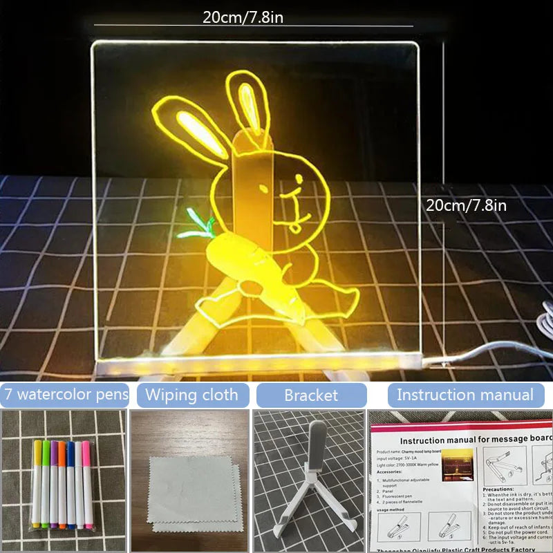 DIY Graffit LED Note Board with Night Light Colorful 7 Pens Acrylic Message Board Children‘s Drawing Board Kids Birthday Gift